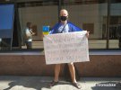 Засідання суду показують на екрані, який на будівлі установи. На подвір'ї - прихильники активіста.