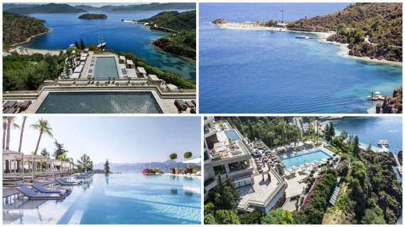 Фото зробили у стейк-хаузі найвідомішого готелю в Туреччині - D Maris Bay. За столом сидять заступник міністра Парцхаладзе, нардепи Кошелева і Макар'ян. Готель розташований в бухті серед соснового лісу і гір.