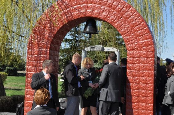 Біля пам'ятника ліквідаторам пару десятків охоронців - вони у чорних костюмах та з навушниками. Кілька людей з міношукачами обходять територію. Двоє хлопців у військовій формі тренуються покладати квіти до пам'ятника. Ходять вперед-назад із жовто-блакитним вінком 20 хвилин. Біля пам'ятника лежать ще два великі букети із червоними трояндами, повністю загорнуті у целофан.