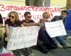 Група активістів студентської організації "Пряма дія", які протестують проти політики міністра освтіи і науки, молоді та спорту України Дмитра Табачника, в п'ятницю попрямувала колоною з Михайлівської площі у Києві в бік Європейської площі.