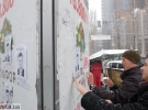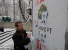 Так зокрема, активісти розклеїли листівки із зображенням президента Віктора Януковича та текстом "Широка страна моя родная Много в ней лесов, полей и рек Я другой такой страны не знаю Президент которой бывший зек".