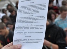 Пікетувальники гуртом зачитали з розданих листків ті статті конституції, які за час своєї діяльності вже порушив діючий президент. Мітинг завершили виконанням гімну.