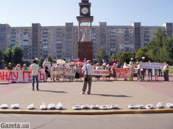 "Що більше важить - воля громади чи важкий гаманець підступного забудовника? Прийшов час дати відсіч мародерам від влади!" - таким було гасло пікетувальників.