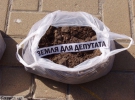 "У нас всього 36 мішечків із землею — для кожного депутата принесли. Найбільший — для мера", - уточнює один із пікетувальників. Вони викладають усі пакетики із землею на асфальті під дверима виконкому у вигляді символічної могилки.