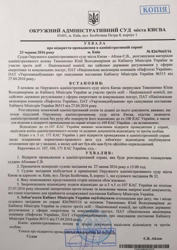 Нагадаємо, 23 червня "Батьківщина" подала 2 позови до Окружного адміністративного суду Києва щодо незаконного підвищення ціни на газ, тарифів на централізоване опалення і водопостачання.