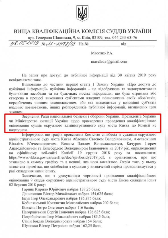 Фейкова реформа, фейкове оцінювання", - розповів Маселко та опублікував відповідь комісії на запит.