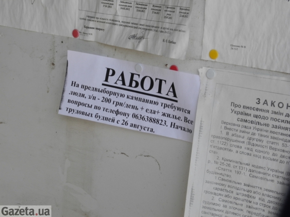 На центральній вулиці - одноповерхова будівля Ясногородської сільської ради. На стенді висять документи. На них зазначено, в який день і де саме приймають мешканців району заступники губернатора Київської області. Там же - оголошення. Селян запрошують працювати на виборах.