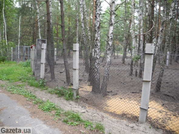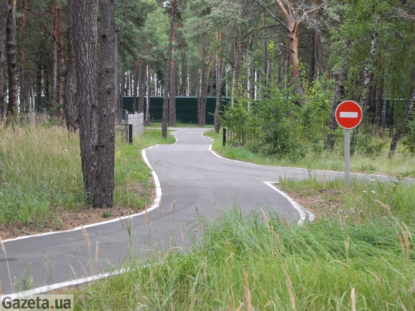 В кілометрі від мисливського будиночку Януковича знову паркан. Біля нього ремонтують дорогу. За парканом бігають олені, косулі, кози та муфлон. Далі охоронці нікого не пускають. Пояснюють, що фотографувати та знаходитись в цьому місці заборонено. "УАЗом" відвозять нас до контрольно-пропускного пункту.