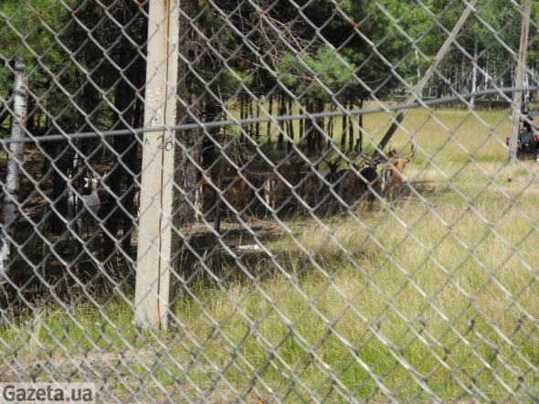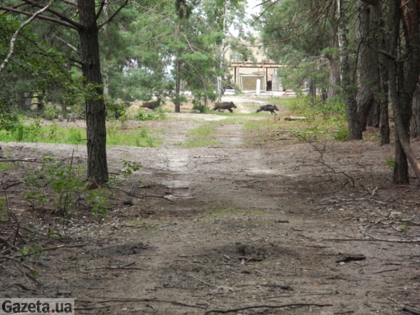 За першою огорожею, яку ми зустрічаємо, розводять диких свиней. Кабани бігають зграями по чистій землі. Між дерев час від часу пробігають свиноматки з десятком дітей.