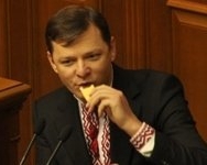 Ляшко не вгамувався і не давав Присяжнюку говорити: "У Росії треба взяти приклад, як захищати власний ринок. Так би наше міністерство захищало б український внутрішній ринок від імпортного непотребу, який сюди везуть, від якого труяться наші люди... А ви єгипетську картоплю везете в Україну, ви китайську гречку везете в Україну, яку свині їдять".
