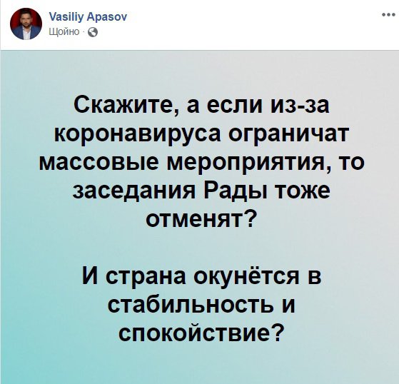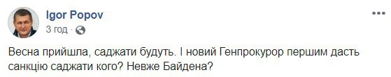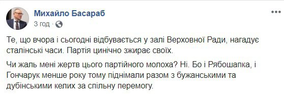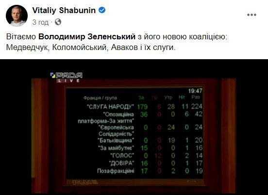 5 березня Верховна Рада висловила недовіру генеральному прокурору Руслану Рябошапці. Це тягне за собою його звільнення. Кандидата на його місце поки не знайшли.