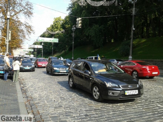 Як повідомляє кореспондент Gazeta.ua служби таксі вимагають від уряду розробити законопроект щодо реформування сфери транспорту та таксі. Ініціаторами акції стали Спілка професійних водіїв таксі, громадські організації, та перевізники Києва.