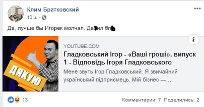 У мережі активно коментували "програму" Гладковського-молодшого.
