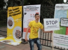 В четвер о 10-30 відбулася акція "Чемпіонат з кидання попільничок у смітник історії". Організатори – Київська асоціація офіціантів та громадські активісти – у такий спосіб закликали депутатів прийняти у другому читанні законопроект № 9474, розгляд якого заплановано на 24 травня. Законопроект має на меті звільнити приміщення закладів громадського харчування – кафе, бари, ресторани – від куріння та захистити професію офіціанта від дискримінації. Переможець отримає 10-кілограмовий кошик з фруктами та плюшевого ведмедика-офіціанта. Змагання проходили на майданчику перед Верховною Радою.