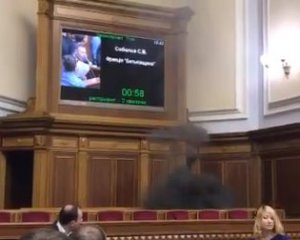 Після голосування у сесійній залі запалили димову шашку. Її приніс нардеп Семен Семенченко. Запалив Юрій Левченко.