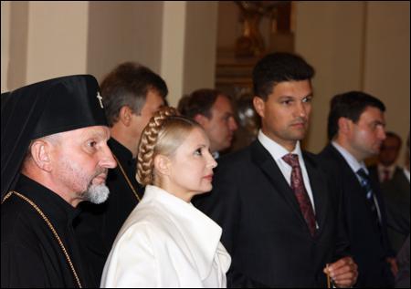Мер Львова Андрій Садовий, голова Львівської ОДА Микола Кміть та голова Львівської обласної ради Мирослав Сеник, народний депутат від БЮТ Андрій Шкіль супроводжували Юлію Тимошенко у Соборі св. Юра у Львові.