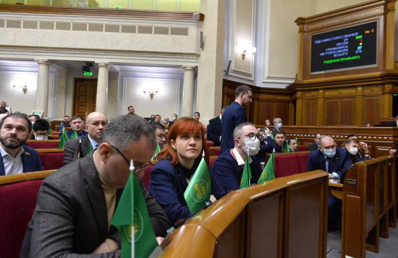У зв'язку з карантинними заходами щодо протидії коронавірусу народні депутати в сесійній залі з'явилися в масках.