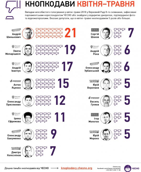 Десятка найбільших кнопкодавів квітня-травня виглядає так: