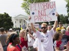 У той же час кілька сотень прихильників Трампа зібралися на вулиці перед Білим домом, щоб вітати рішення Трампа про вихід з кліматичної угоди.