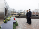 Володимир Зеленський з дружиною взяв участь у покладанні квітів до Меморіалу у Бучі.