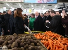 "Ми знаходимось в звичайному київському магазині. Мій інтерес пов'язаний з тим, наскільки добре представлений асортимент овочів, фруктів. Скільки вітчизняних продуктів, яка цінова складова. Я побачив те, що мені кожного дня дають у зведеннях, - каже журналістам, говорить російською. - Можу запитати в покупців - може це спеціально ціни знизили до мого приїзду? Думаю, що ні. Я питав покупців. Така цінова позиція не міняється упродовж останнього часу. Не дивлячись на чутки про нібито подорожчання хліба. Якби від мого приїзду залежало знижуються ціни чи ні, я би щодня виділяв півгодини, аби їздити і дивитись".