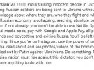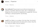 Позашлюбній доньці президента країни-агресора РФ Володимира Путіна 18-річній Луїзі Розовій в Instagram пишуть, що її батько вбивця, порівнюють його з Гітлером і бажають йому смерті.