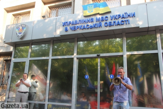 Вчора під стінами будівлі Управління МВС у Черкаській області під час акції на підтримку мітингувальників у Врадіївці не порозумілися опозиціонери. Конфлікт виник між Володимиром Рябініним, заступником голови обласної організації "Фронт Змін", та депутатом Черкаської райради від "ФЗ" Владиславом Мончановим. Розборонили опозиціонерів правоохоронці, які слідкували на мітингу за громадською безпекою.