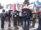 Близько 100 представників "Батьківщини", УДАРу і "Свободи" пікетують облраду. Мітингувальники тримають партійні прапори і скандують "Банду геть!", "Тулуба - геть!".