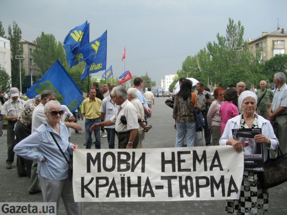 "Мова - духовний фундамент народу. Зникне наша мова, зникне і держава! І тоді наші діти стануть гарматним м'ясом у чужих військах!" - виступив із промовою донецький пенсіонер Іван Хитрий.