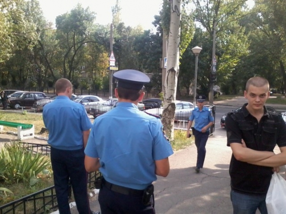 "Ми розповсюджували листівки проти донецьких мажоритарників із Партії регіонів, й проти "Регіонів" у цілому, - розповідає вона. - І десь через 30 хвилин після початку акції приїхав наряд міліції, потім ще пригнали два "бобіка". Запакували наших шістьох активістів у ці "бобіки". При цьому не назвали жодних причин затримання, сказавши лише: "Мы вам все в участке расскажем".