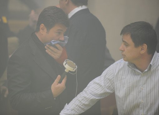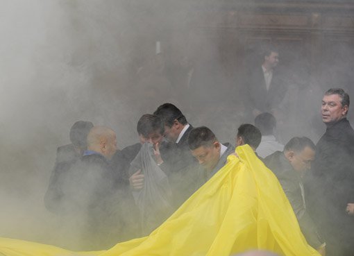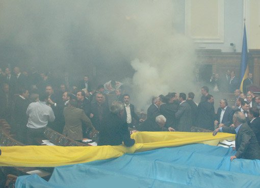 Потім опозиційні нардепи мали застосувати димові шашки. На ділі це зробив лише нинішній спікер Андрій Парубій. У залі розпочалася бійка.