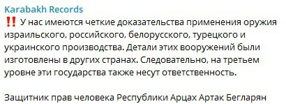 У Нагірному Карабасі заявили, що в ході бойових дій застосовується зброї українського виробництва. А тому Україна несе відповідальність за те, що відбувається.