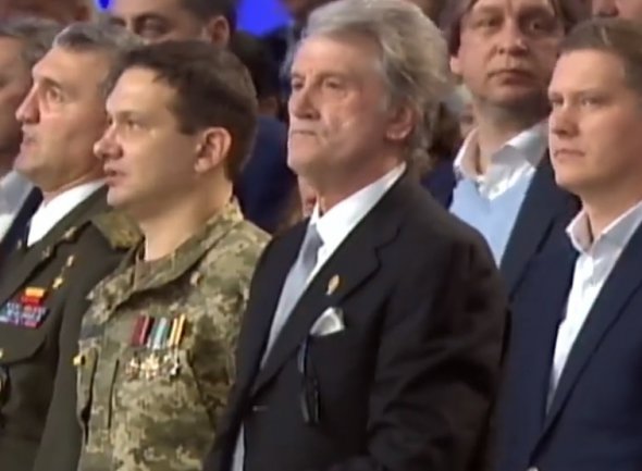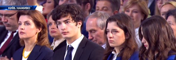 Також у залі були присутні третій президент Віктор Ющенко, міністри Уляна Супрун та Володимир Омелян, керівник Української добровольчої армії Дмитро Ярош, родина президента.