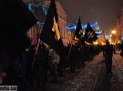 Попереду активісти тримали банер "За мертвих, живих та ненароджених". Дорогою також майоріли червоні вогні піротехнічних смолоскипів. Несли також прапори з символом "Ідеї нації" та червоно-чорні стяги.