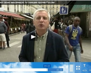 Російському Першому каналу зіпсували сюжет. Журналіст Андрій Черкасов у Парижі записував репортерський стендап до сюжету про "жахіття" санкцій, які Росія ввела для Європи, як тут на задньому плані з'явився афроамериканець у футболці з українським тризубом.