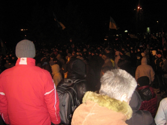 Після 40-хвилинного мітингу облдержадміністрації, люди перекрили рух транспорту і колоною рушили до міської ради. Біля будівлі "беркутовців" не було, стояло не більше 30 міліціонерів у формі. Активісти заспівали гімн України і рушили до Свято-Успенського собору Київського Патріархату. Там відбулася панихида за загиблими активістами Київського Майдану.