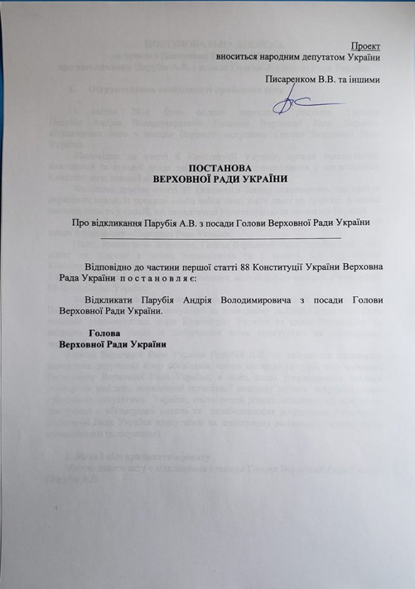 Низка народних депутатів ініціювала процедуру відкликання Андрія Парубія з посади голови Верховної Ради.
