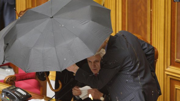 Вів засідання парламенту тодішній спікер Володимир Литвин. Його закидали яйцями.