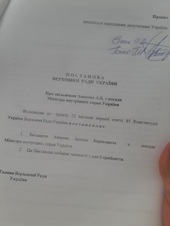 У Верховній Раді збирають підписи під проектом постанови про відставку міністра внутрішніх справ Арсена Авакова.