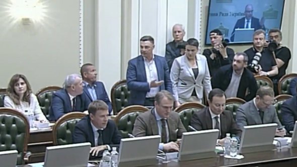Купрій перебивав Парубія. Разом із ним у залі стояла нардеп Надія Савченко.