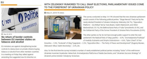 За результатами опитування, проведеного 13-17 травня 2019 року, якби парламентські вибори відбулися найближчої неділі, шанси на потрапляння до наступного складу українського парламенту отримали б такі партії: "Слуга народу" новообраного президента України Володимира Зеленського (34,7%), "Опозиційна платформа – За життя" Юрія Бойка, Вадима Рабіновича і Віктора Медведчука (15,1%), "Батьківщина" Юлії Тимошенко (9,5%) і "Блок Петра Порошенка "Солідарність" (8,9%).