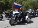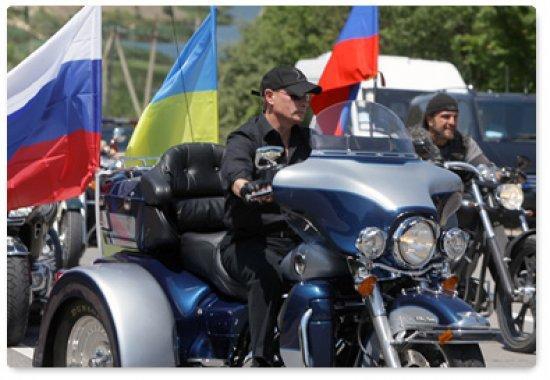 Путін керував трайком з автоматичною коробкою передач "Харлей Девідсон" модифікації "Леман", що був прикрашений російським і українським прапорами.