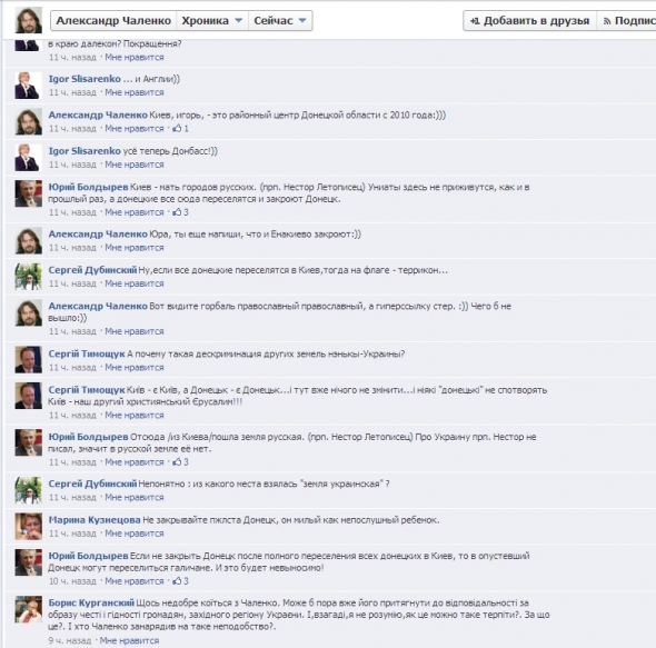 Між тим, Болдирєв вплутався в дискусію реплікою "Киев - мать городов русских. (прп. Нестор Летописец) Униаты здесь не приживутся, как и в прошлый раз, а донецкие все сюда переселятся и закроют Донецк ".