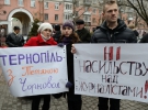 Із пофарбованими в червоний колір пов'язками на роті прийшли деякі тернопільські журналісти сьогодні під стіни обласного управління міліції, виражаючи свою солідарність із побитою Тетяною Чорновол.