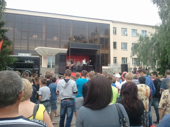 У Василькові розпочався концерт, який передує виступові лідера Удару Віталія Кличка. Він приїде до цього міста, щоб агітувати за єдиного кандидата від опозиції на виборах мера Василькова "ударівця" Сергія Сабова.