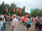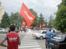 На площі зібралися близько двох сотень людей. Тримають близько двох десятків прапорів і символіки Удару. Багато людей прийшло з дітьми послухати концерт. Навколо площі близько восьми міліціонерів.