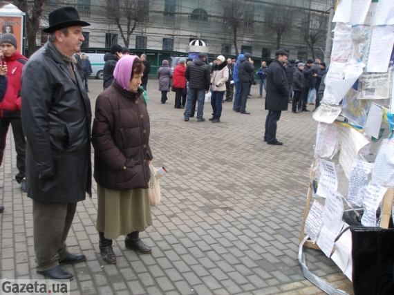 "Бачте, хто нами править?" - 76-річна вінничанка Ганна Григорівна розгорнула шматок аркушу, де написано "ВорАзаров". Пояснила, що це читається однаково зліва-направо і навпаки.