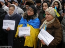 У кількох учасників мітингу роти були заклеєні стрічками "Цензура". У перших рядах вінничани тримали аркуші з рядками Лесі Українки, Шевченка та Василя Стуса.