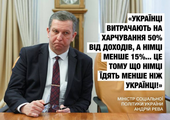 "Ну-ну... Пане міністре Андрій Рева, а нічого що, в Німеччині мінімальна зарплата 1500 євро, а в Україні - 100 євро, що в 15 разів менше. Про різницю в середній зарплаті я взагалі мовчу. Ну а ціни на продукти, як ви самі заявили, майже однакові.