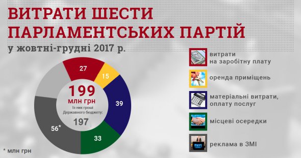 Загалом за останні три місяці 2017-го партії витратили 199 млн грн, із них 197 млн – державні.